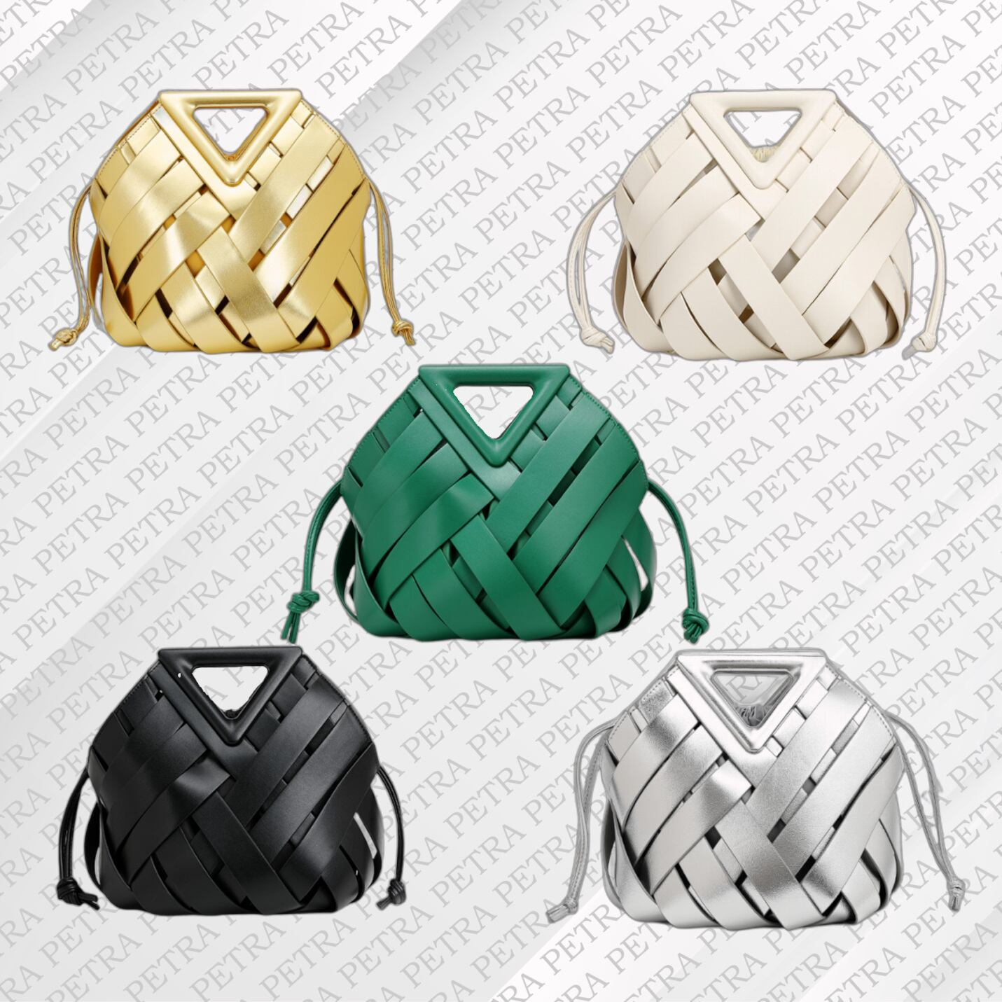 ペトラ【PETRA】編みハンドバッグ、バケツ型バッグ、ショルダーバッグ、レディスハンドバッグ、巾着バッグ BK